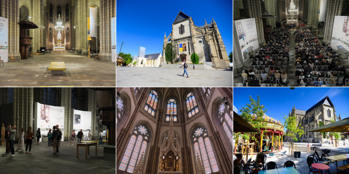 Les coureurs traversent l’Espace Bonne Nouvelle qui se trouve dans la nef de la basilique Saint-Aubin. Cet espace accueille des expositions et des colloques ou concerts en lien avec l’intuition du mémorial de la paix comme lieu de célébration en dialogue avec le monde . Ce mémorial permet de découvrir l’exposition « Une vie en Mission » sur le Rennais Marcel Callo, béatifié en 1987 pour son action catholique durant la Seconde Guerre Mondiale et la vie de Rennes des années 1920 aux années 1940.